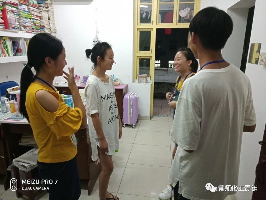 在走访过程中,学生会成员和同学们打招呼并问同学们都来自哪里,尤其关心衣食住行方面的问题,询问初次来到黄冈的同学有没有不适应的情况,鼓励同学们珍惜大学时光,努力成长成才,并且嘱咐室友间和谐相处互相帮助。最后主要强调让同学们注意人身财产安全,提醒同学们要谨防诈骗。