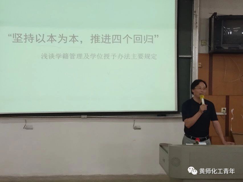 随后,副院长叶发兵就学籍管理规定的说明,重点介绍了重修和补考、留级和降级四个方面的相关条例。田院长就“重点实验室”做出相关介绍。陈砚美老师作为老师代表发言,优秀学生代表邹水香代表老生发言,给18级的小萌新提出了相关建议,新生代表黄李理代表新生对大学生活做出了相关发言。会议的最后,辅导员余杨老师介绍这3天的新生入学教育具体安排。