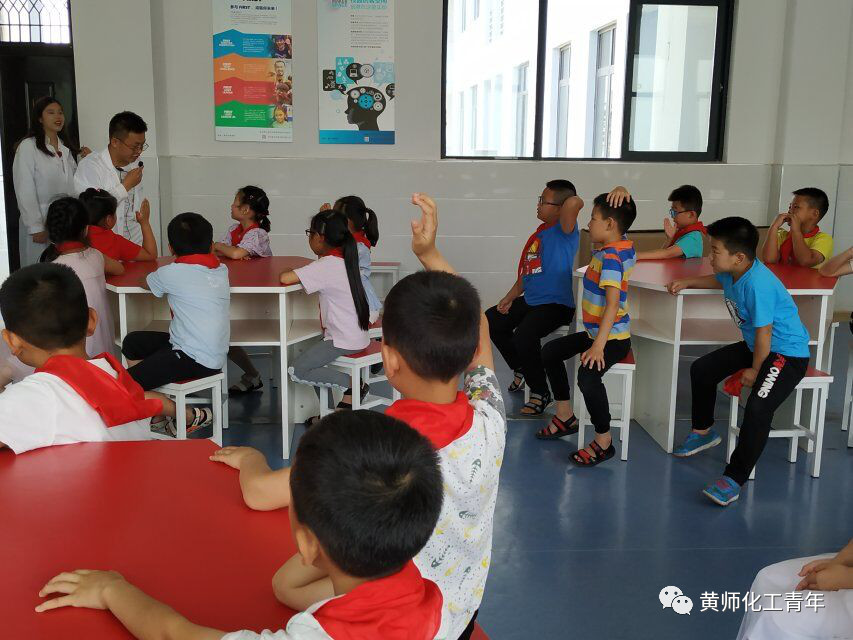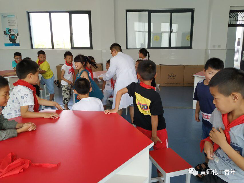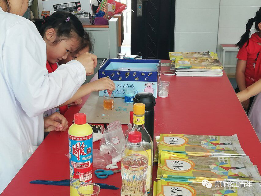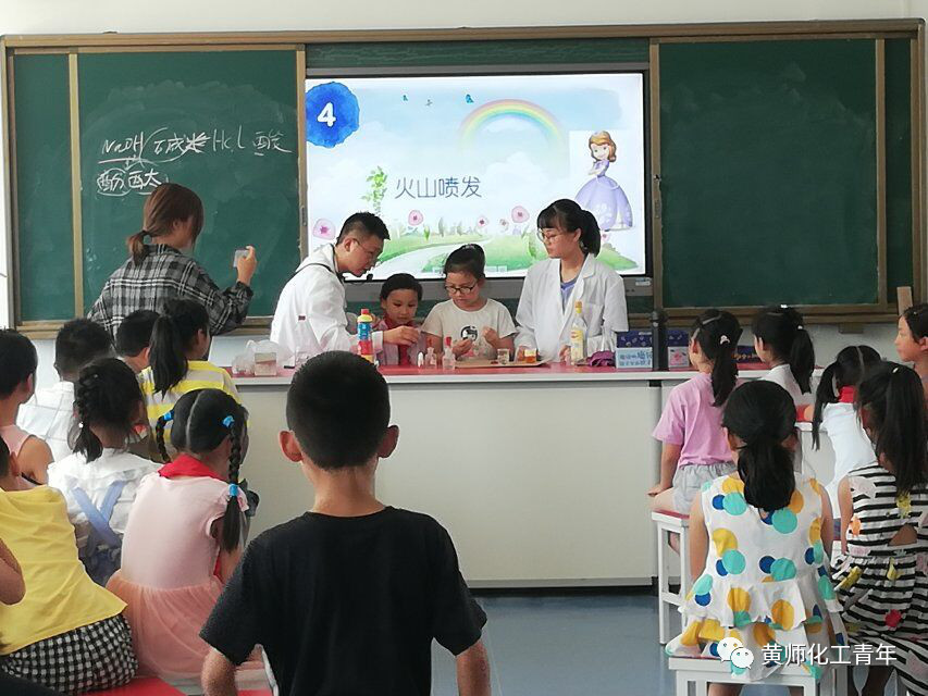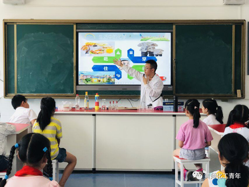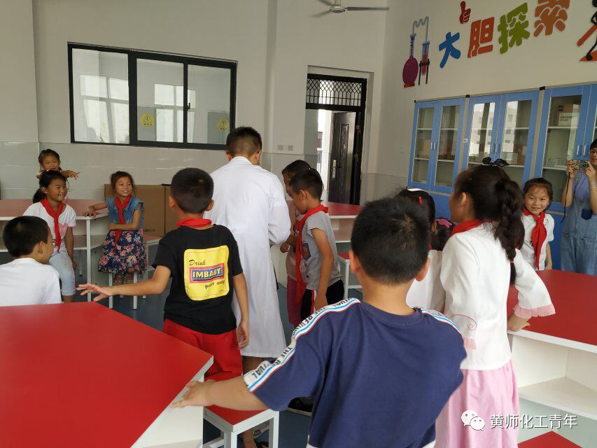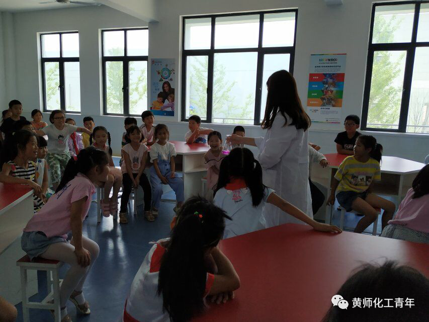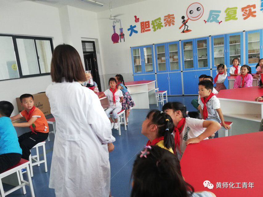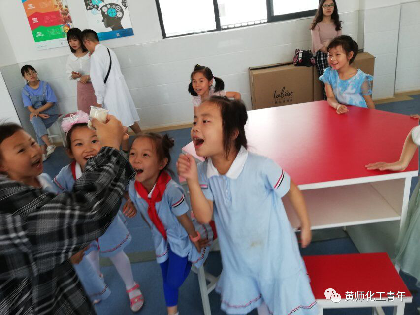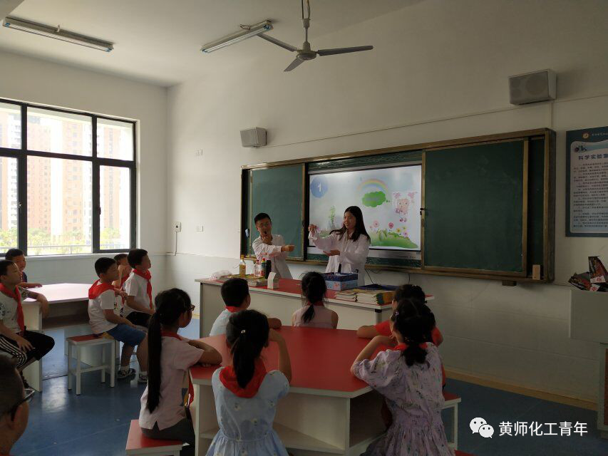 2019年6月24日上午,化学化工学院“阳光化学公益团队”去到了黄冈市实验小学给一二年级的小孩子展示化学的魅力。本次出行的是学生会办公室主任张伟,以及部门成员郑雨朦,黄李理,卓颖,韦玲丽。带队老师是余杨老师和肖延亮老师。
