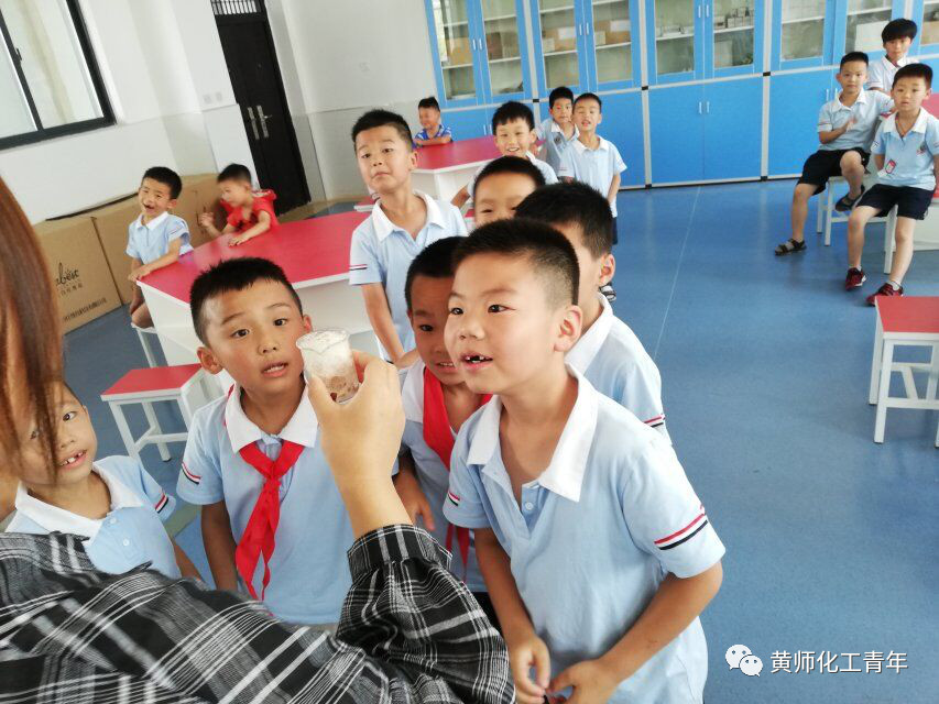 通过这次小学之行,我们每个人都感触良多。化学作为一门应用型学科,应该适当从小培养兴趣,让小朋友们具有发现生活中化学的潜质,以便在日后的学习和生活中更加的了解化学,热爱化学。看着小孩子们新奇的笑脸,我们也会认真学习,努力提高专业知识水平,成为很好的榜样。