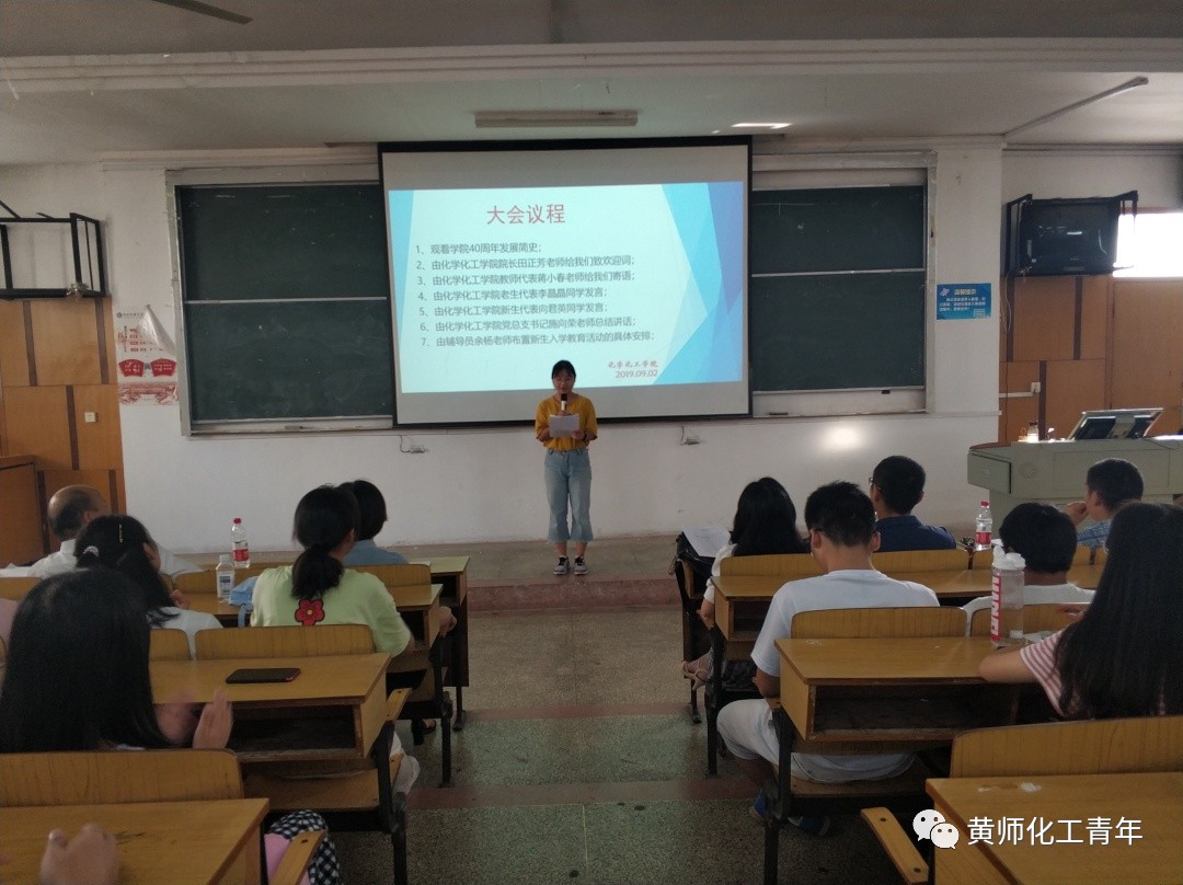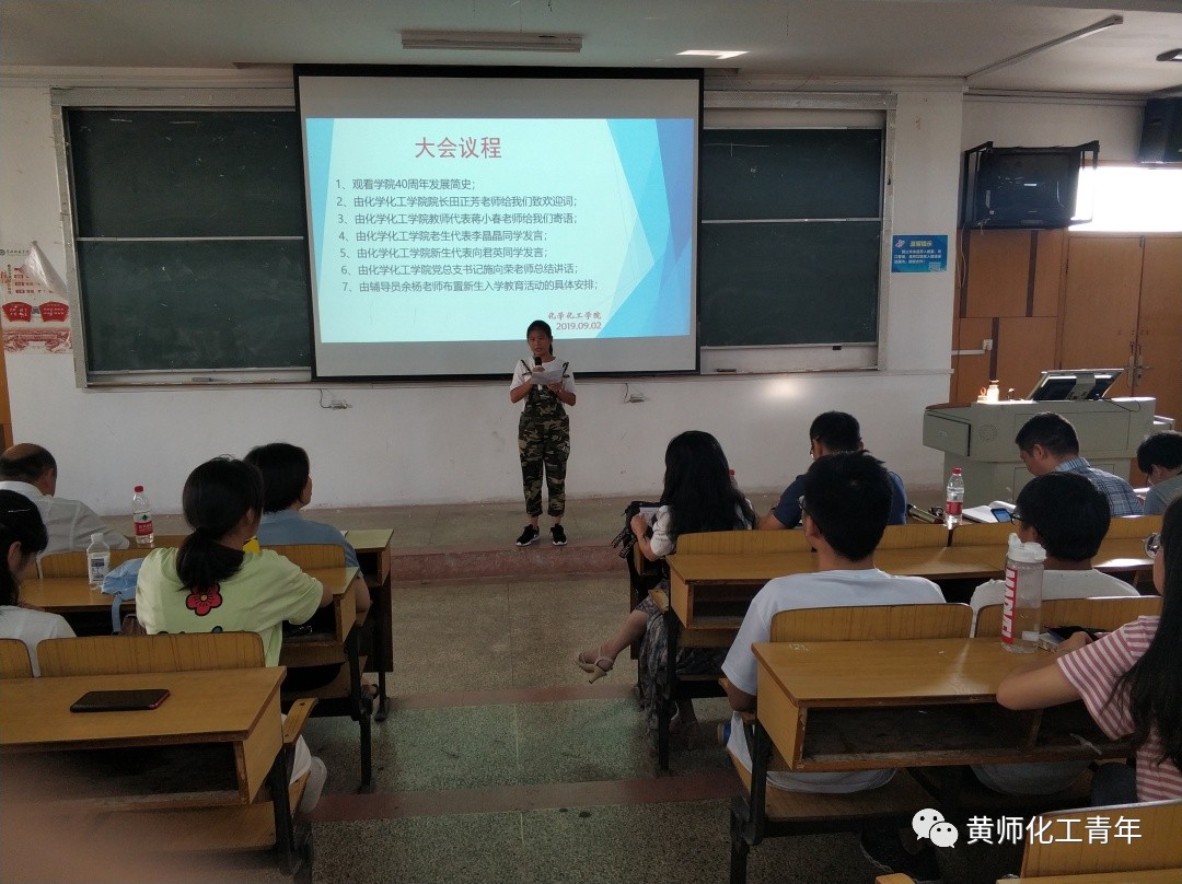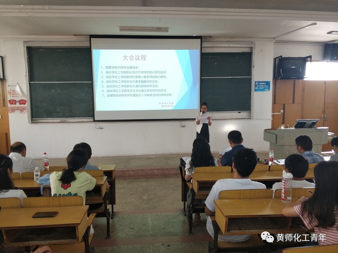 2019年9月2日下午四点,2019届新生动员大会如期展开。出席本次会议的有化学化工学院党总支书记施向荣老师,院长田正芳老师,辅导员余杨老师、肖延量老师及化学化工学院部分教师,参加本次会议的有19届全体新生。