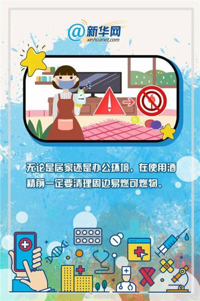 2). 正确使用。使用酒精时不要靠近热源、避开明火。不建议用于电器表面消毒,必须使用时,应先关闭电源,待电器冷却后使用。每次取用后,必须迅速将容器封闭,严禁敞开放置,防止挥发。