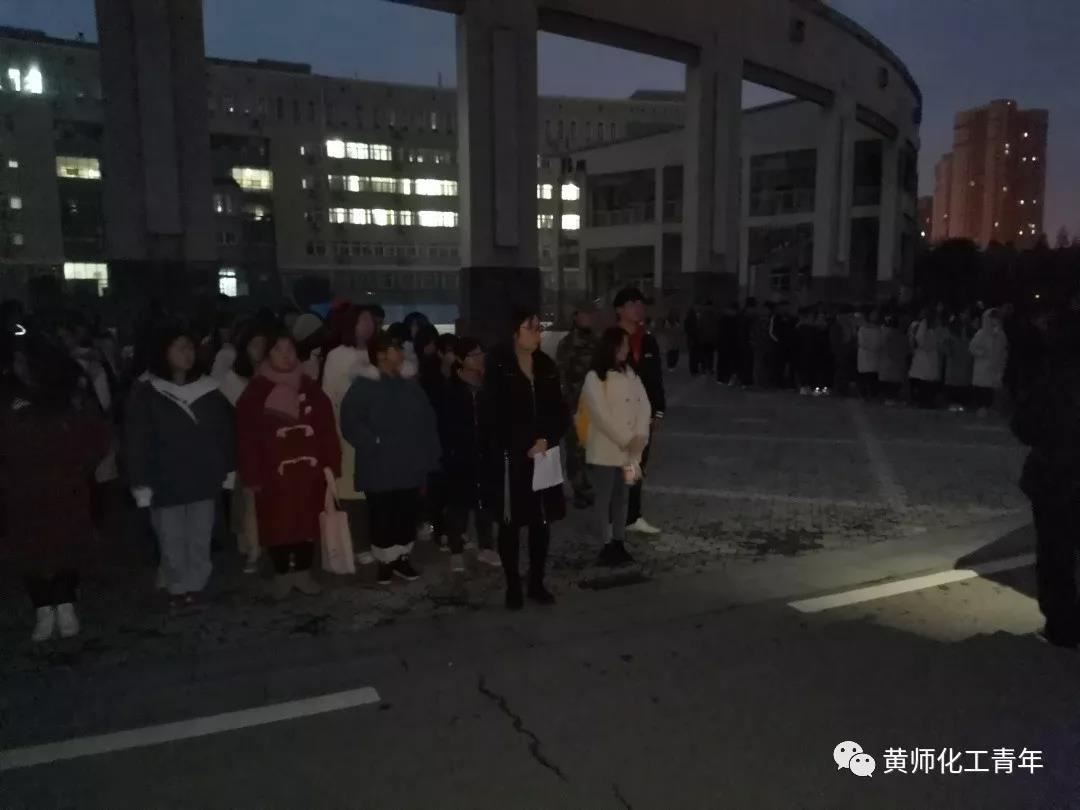 12月23日凌晨六点半,我院在博学楼前参加了庄严的升旗仪式,大一全体学生、学生会全体成员以及分团委书记余杨老师参加升旗仪式。