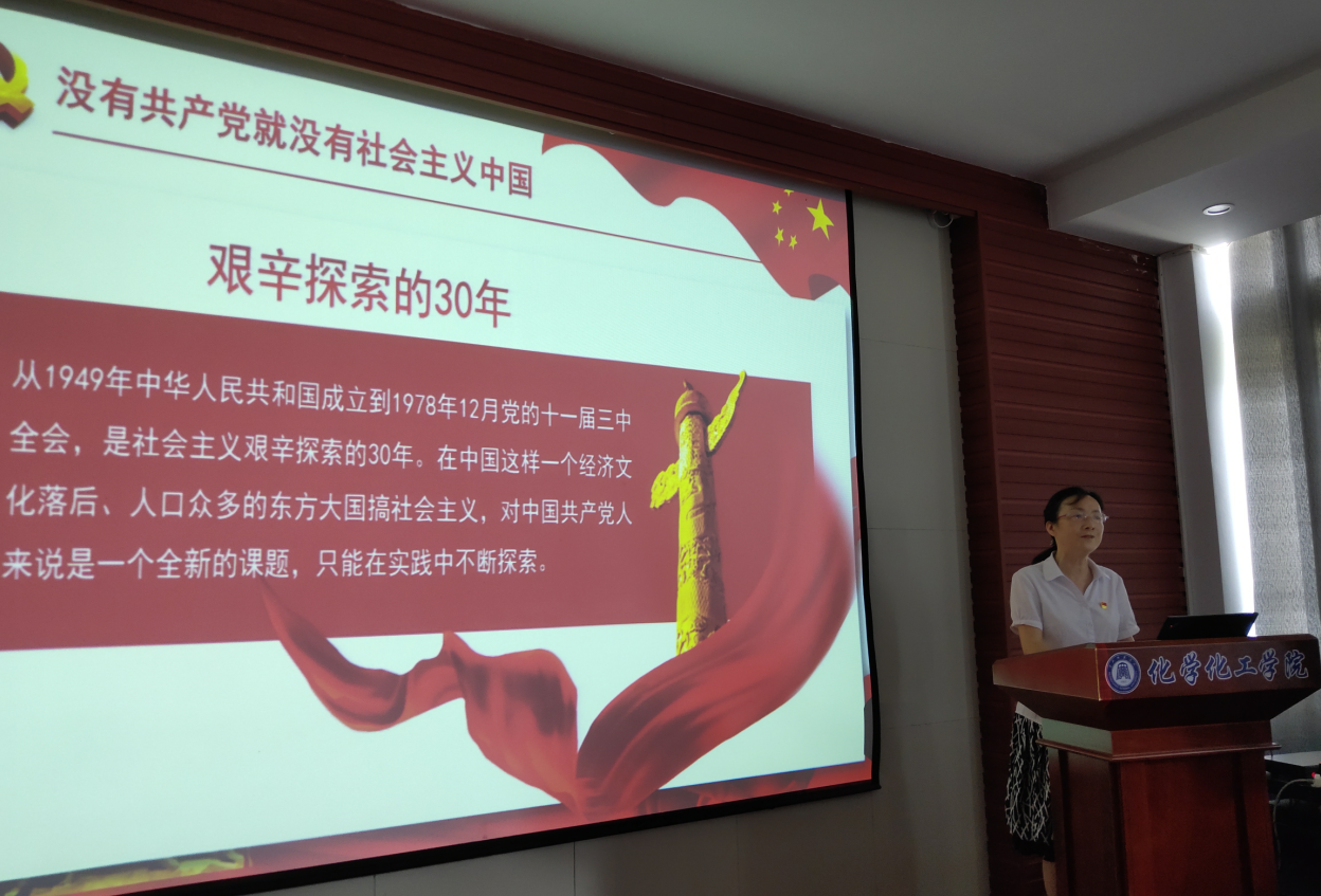 6月17日下午2:30,党总支书记施向荣在化学楼会议室为化学化工学院全体教师讲授题为《学党史 颂党恩 跟党走》的专题讲座。化学化工学院全体教师参加会议。