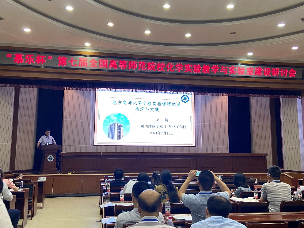 在这次实验室建设研讨会中,化学化工学院副院长龙涛教授做了题目为“地方高师化学实验课程体系构筑与实践”的报告。将我院的实验课程体系与其他师范院校的参赛代表进行了深入交流。