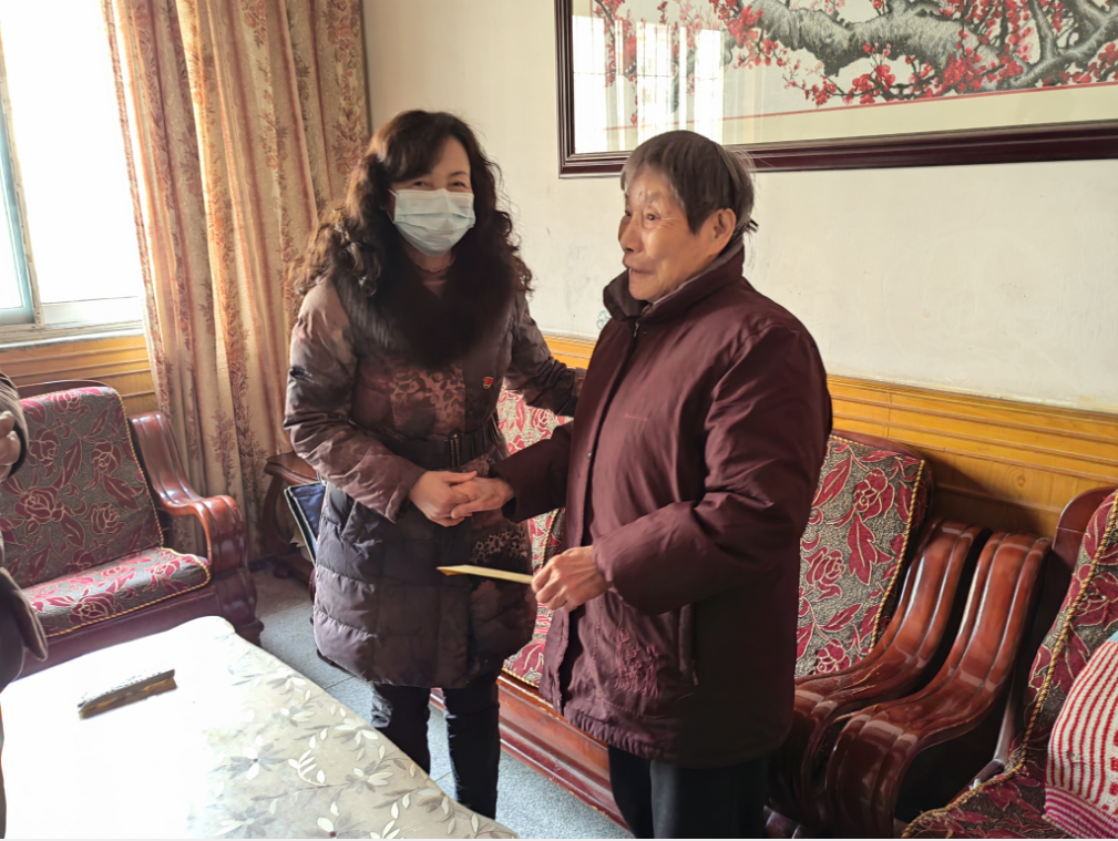 慰问中,施向荣书记代表学校给离退休党员严艳珍同志送去了慰问金,并与严艳珍同志亲切谈心交流,详细了解了她的生活、身体状况后,叮嘱她保持良好心态和健康的生活习惯,度过一个幸福安康的春节。