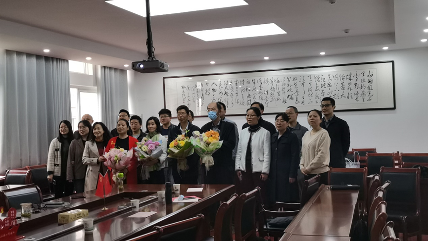 总支书记施向荣和院长田正芳为退休教师献上鲜花和贺卡,感谢退休教职工为学院发展所做出的贡献。