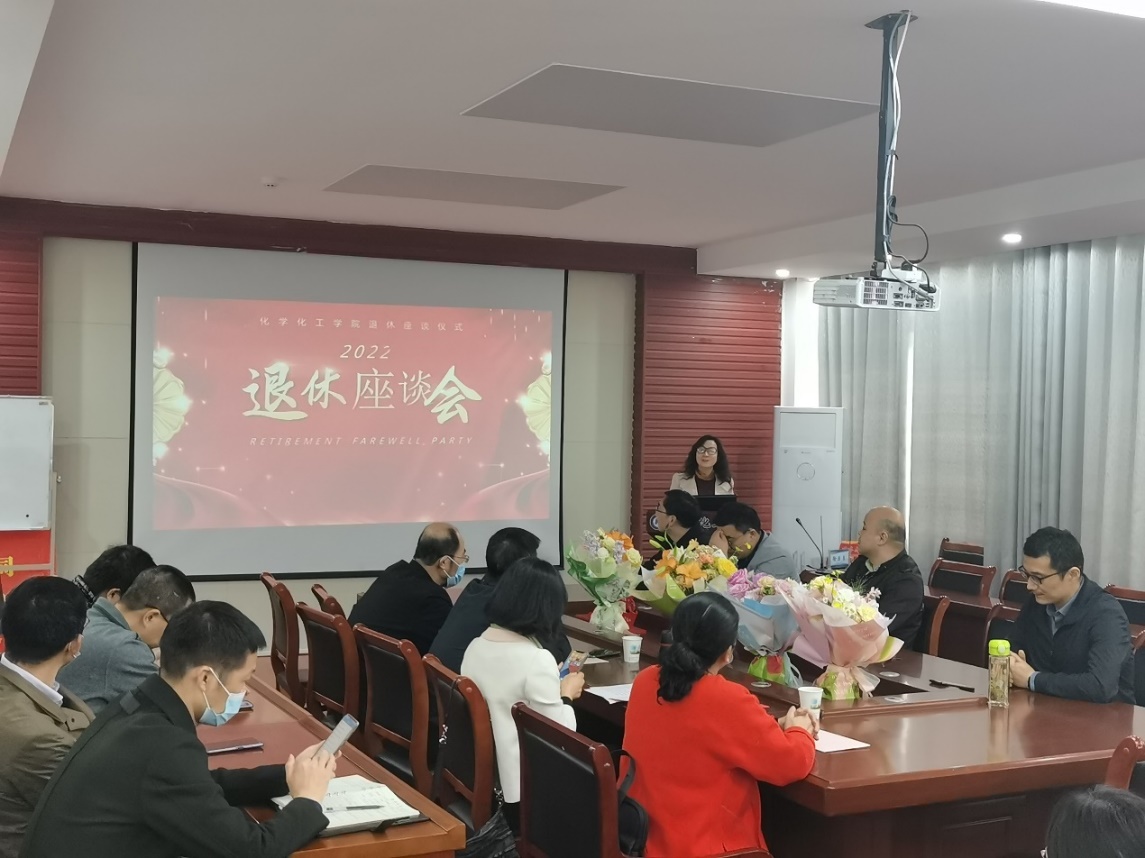 2022年4月15日上午,化学化工学院在化学楼407会议室为莫小曼等退休教师举办座谈会。化学化工学院班子全体成员出席座谈会。座谈会由学院副书记龙刚主持。