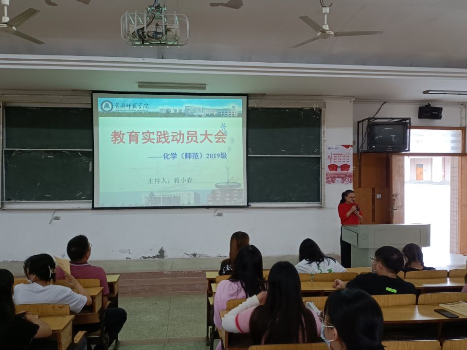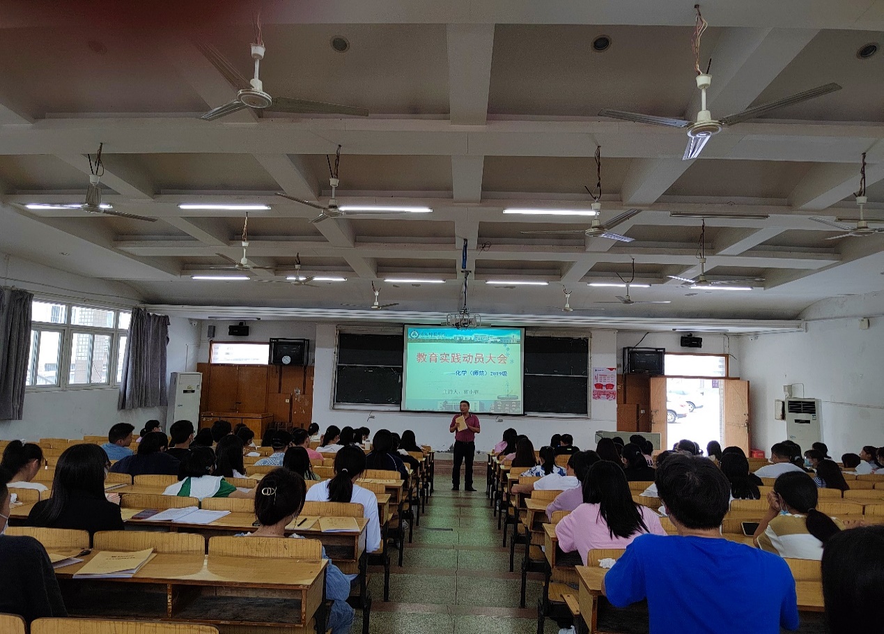 为加强化学(师范)专业的人才培养,进一步做好师范生的教育实习工作,确保2022年教育实习工作的顺利开展。我院于2022年8月31日下午在博学楼A01召开2022年度秋季教育实习动员大会。会议由副院长蒋小春主持,副院长龙涛、化学系主任陈砚美及全体19级化学系学生参与了此次会议。