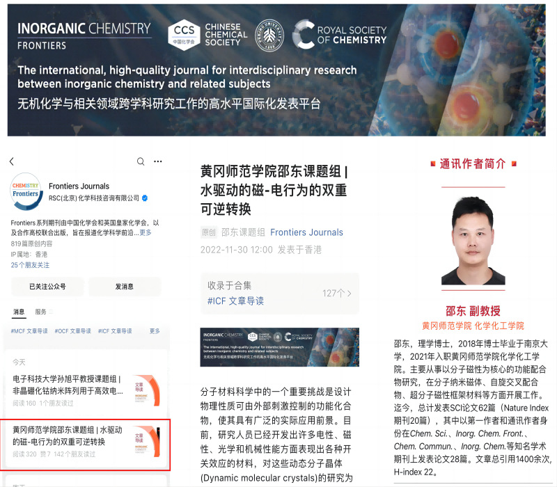 我校青年教师在无机化学顶级期刊发表论文并获公众号推介