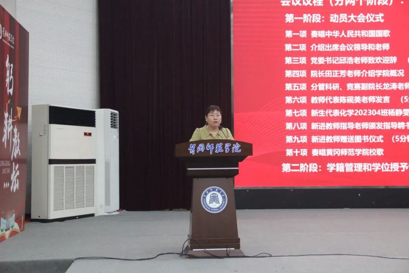 随后,2023年校“十佳师德标兵”、教师代表陈砚美作新生寄语;新生代表杨静雯同学进行发言。