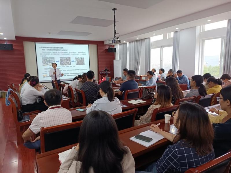 9月21日下午,我院在化学楼407会议室举行师德涵养暨教育能力提升专题报告会。武汉理工大学白玉教授受邀来校,并以《如何把自己铸就成为一名卓越的高校教师——加强教师的职业精神与职业素养修炼》为题对全院教师进行了宣讲报告。副院长蒋小春主持报告会,学院班子成员和全体教职工参加此次活动。