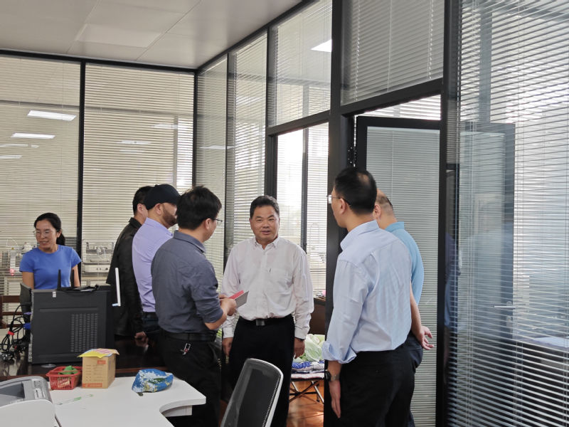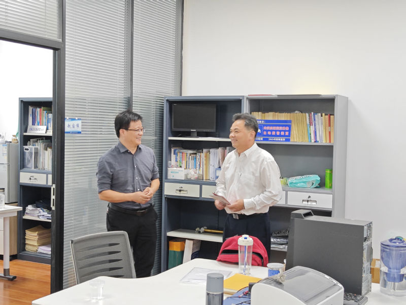 陈向军一行参观了赵国伟的实验室,并与其团队进行亲切交谈,赵国伟围绕着实验室建设进展、团队发展、成果转化等方面进行了介绍。陈向军充分肯定了赵国伟及其团队近年来对学校所做的突出贡献,希望再接再厉,取得更多创新成果,实现更多科研成果转化,切实推动“校、地、企”产学研深度融合。