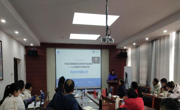2023年12月29号下午,2022级学科教学(化学)硕士研究生学位论文选题报告会在化学楼407顺利举行。本次选题报告的导师组组长为华中师范大学的王后雄教授,组员由英国365集团官网的田正芳、龙涛叶发兵、张凯、张龑、蒋小春、陈砚美、叶辉等导师组成。10名2022级学科教学(化学)硕士研究生参加了选题报告会,2021级、2023级全体硕士研究生旁听学习了此次选题报告会。