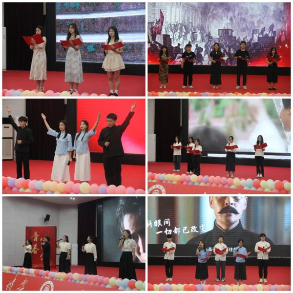 第二环节为演绎环节。选手们各显身手,有的深情歌唱、有的做温馨手语操、有演绎扣人心弦的情景剧……歌曲《少年中国说》的激昂合唱,鼓励着每一个年轻人勇敢地追逐自己的梦想,不畏艰难,不惧挑战,尽情展现自己的风采;情景剧《五四风雷》把晚会推向了高潮,让同学重温了那段屈辱和抗争的历史,这不仅仅是对历史的追忆,更是对当代青年一代的号召:立志做有理想,敢担当,能吃苦,肯奋斗的新时代好青年。比赛现场气氛热烈,展现了青年人的朝气和活力,让深刻感受到了青年人的责任和使命。