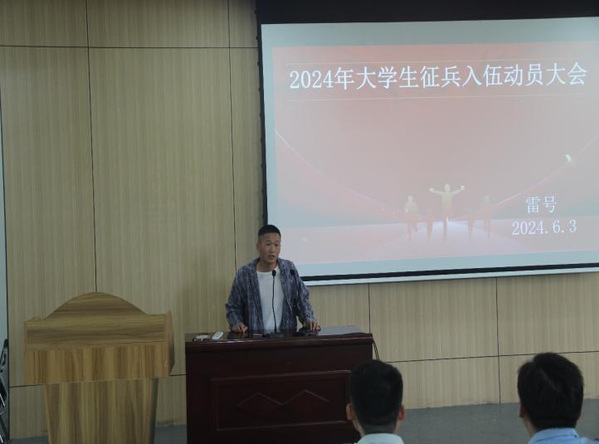 院党委副书记龙刚总结讲话。他指出,参军入伍,不仅是一种荣誉,更是一份使命,大学生要切实提高对应征入伍的认识,增强大学生应征入伍的紧迫感和使命感。每一个热血青年都应该怀揣对国家和人民的责任感,积极投身到军队这个大熔炉中。他强调,有很多成功人士都有入伍参军的经历,部队的锻炼可以塑造个人敏锐的判断能力,锻造优秀的管理能力和执行能力,提升个人英勇顽强的气质,入伍经历是人生当中宝贵的财富最后他鼓励同学们踊跃参军,积极响应国家的号召,用青春和汗水书写属于自己的军旅篇章,为国防事业贡献属于自己的力量。