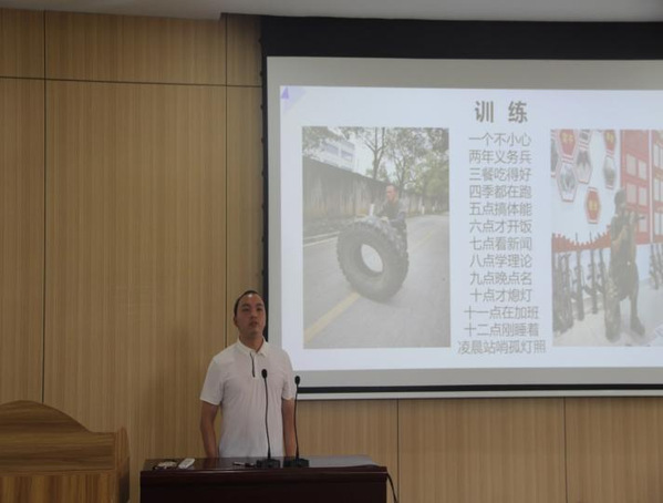 活动第一项,由退伍复员学生分享服兵役经历。雷号、何国强两位退伍复员学生结合自身参军入伍的经历,生动讲述了部队训练和生活情况、节日假期、福利设施,阐述了大学生入伍对于自我提升锻炼成才有着“炼其意志,健其体魄”的重要意义。作为新时代大学生,要增强自身的责任感与使命感,要将个人梦融入强军梦、强国梦,要用热血和青春报效祖国。通过个人宣讲,激发了在场学生应征入伍的兴趣和投笔从戎的决心。