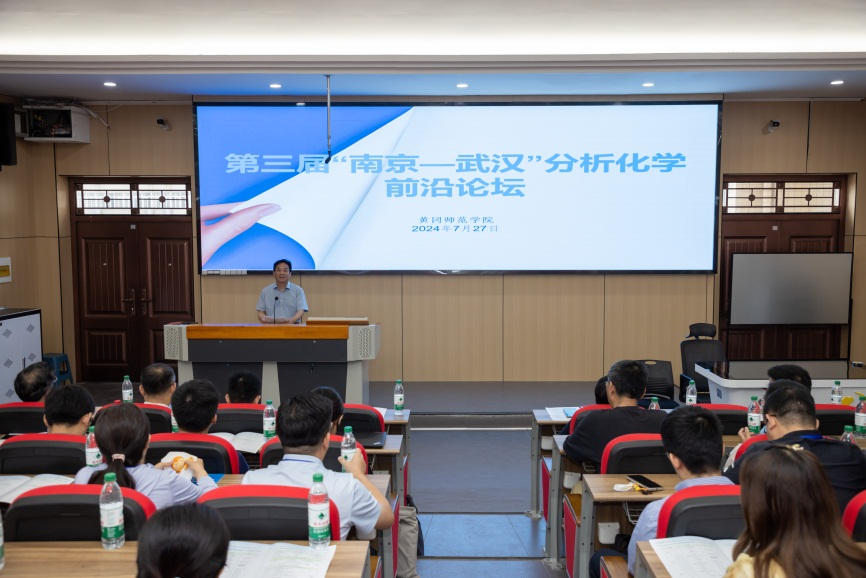 7月26日-28日,第三届“南京-武汉”分析化学前沿论坛在我院成功举行,本届论坛由武汉大学化学与分子科学学院和湖北大学化学化工学院主办,英国365集团官网和催化材料制备及应用湖北省重点实验室承办。南京大学徐静娟教授、夏兴华教授、刘震教授、东南大学刘松琴教授、张袁健教授、江苏大学王坤教授、武汉大学胡斌教授、黄卫华教授、湖北大学刘志洪教授、王升富教授、张修华教授,以及来自江苏、湖北多所高校共计40余名专家学者代表参加了本次论坛。校党委常委、校长助理汪晓凌出席论坛开幕式,化学化工学院全体班子成员及师生代表参加论坛,化学化工学院院长田正芳教授主持开幕式。