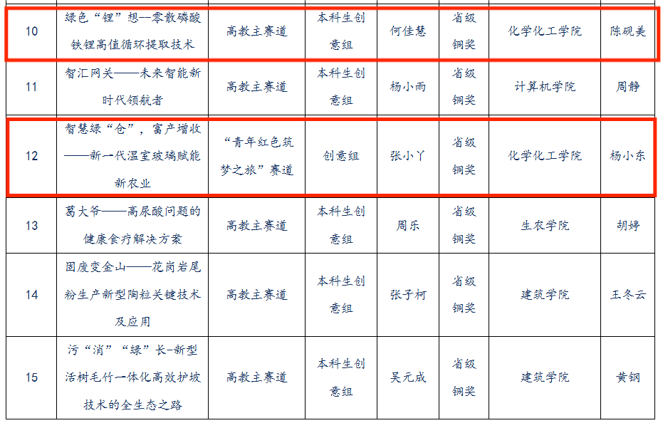 经过省赛初赛评审,在29日的省赛现场赛中,通过小组赛激烈比拼,我院由孙先凤博士指导的“善‘石’善用——尾矿绿色化高附加值利用引领者”获得省赛金奖,由李芊芊博士指导的“返璞‘硅’真——含氟硅渣绿色高值化利用先行者”、李雪娇博士指导的“‘镁美与共’——新型环保技术菱镁建材的先行者”获得省赛银奖,由陈砚美博士指导的“绿色‘锂’想——零散磷酸铁锂高值循环提取技术”、杨小东博士指导的“智慧绿‘仓’,富产增收——新一代温室玻璃赋能新农业”获得省赛铜奖。