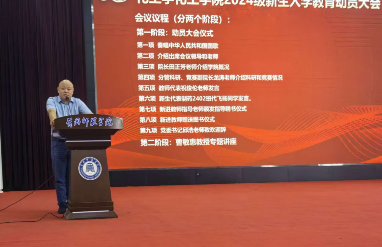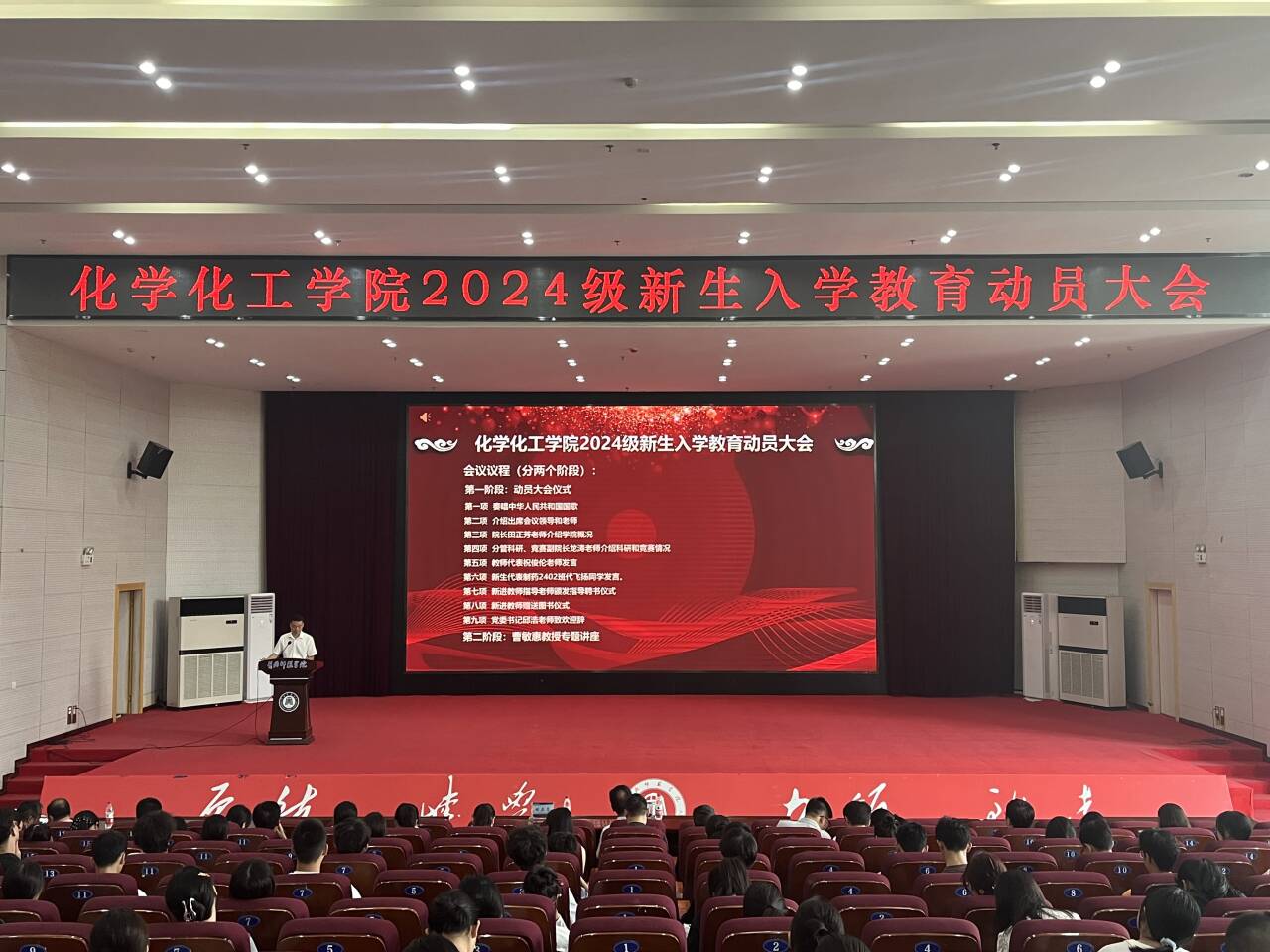 2024911日,化学化工学院2024级新生入学教育动员大会在南区学术交流中心举行。院党委书记邱浩、院长田正芳出席会议,学院办公室主任、各专业负责人和教研室主任、教学秘书、科研秘书、辅导员、新生班主任、新进教师、新进教师指导老师以及到校2024级本科生和研究生参加本次大会。大会由辅导员李东主持。