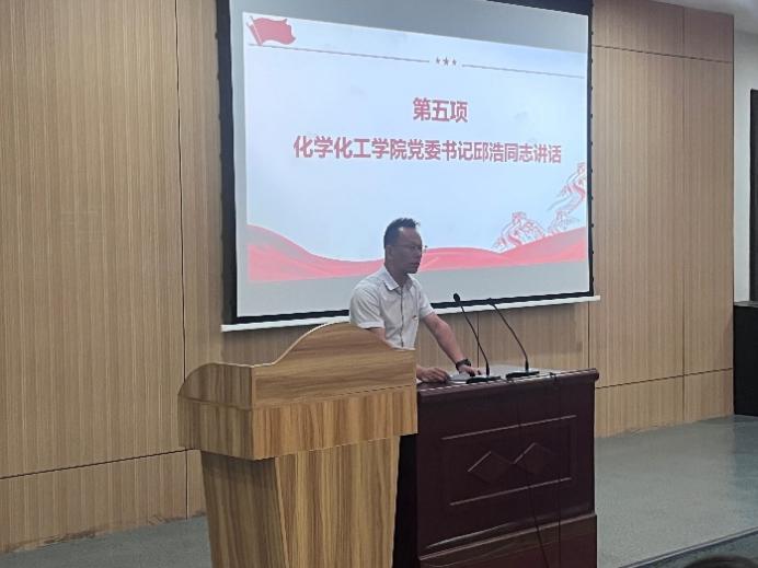 为深入学习贯彻党的二十届三中全会精神,进一步引导入党积极分子坚定理想信念,端正入党动机,从源头上把好党员“入口关”,为党的事业培养更多忠诚、干净、担当的青年力量。924日晚,化学化工学院、数学与统计学院2024年下半年入党积极分子联合培训班开班式在博学楼B01隆重举行。化学化工学院党委书记邱浩出席开班仪式并讲话,数学与统计学院党委副书记宋明、数学与统计学院学生第一党支部书记杜雯应邀出席,开班仪式由化学化工学院学生第一党支部书记余杨主持,来自两个学院的本科生、研究生的143名入党积极分子学员参加开班式。