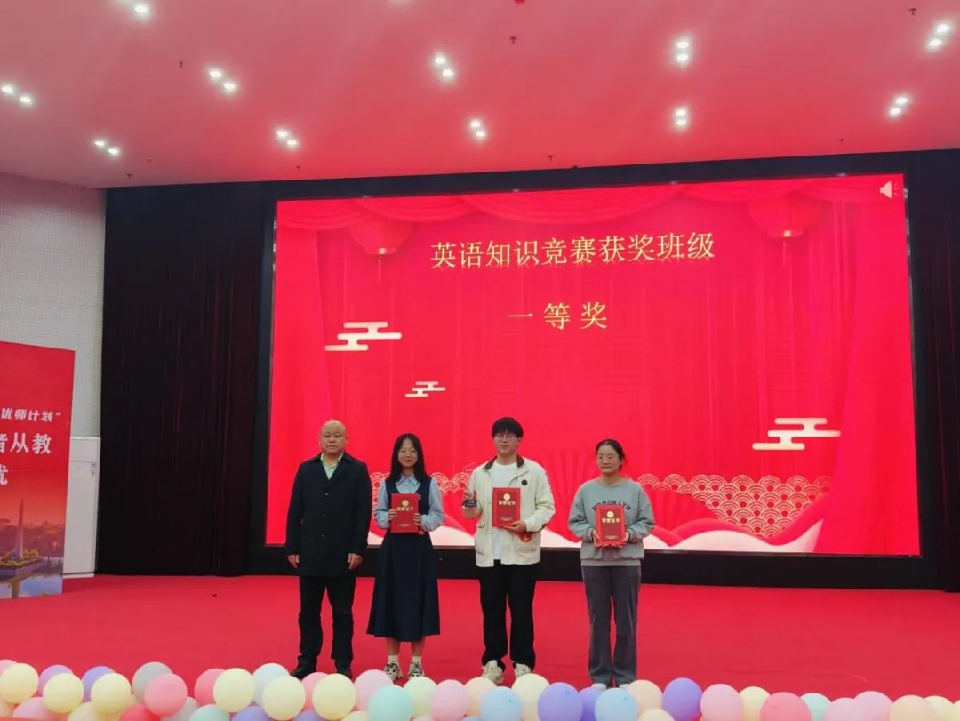 第二个环节为“词汇王”争霸赛。参赛队伍以班级为顺序,随机抽取题库现场答题,他们带着满满的自信与期待,思维敏捷,快速理解题目并组织答案。师生们被参赛者们的精彩表现所吸引,不时爆发出阵阵喝彩声,整个现场气氛热烈,热火朝天。