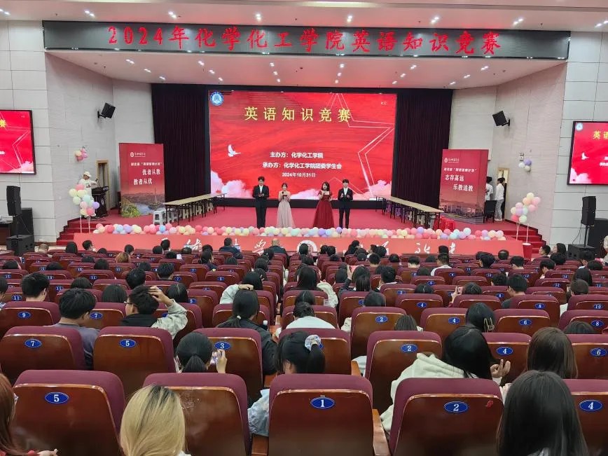 20241031日,化学化工学院在南区厚德楼学术交流中心成功举办了一场以“Master English and chemistry, master your future”为主题的英语知识竞赛。外国语学院蒲春红、马晓敏、刘盛华三位老师以及化学化工学院院长田正芳、副院长龙涛、副院长蒋小春出席本次本赛并担任评委,学院辅导员、全体班主任、大一至大三年级学生参加本次活动。