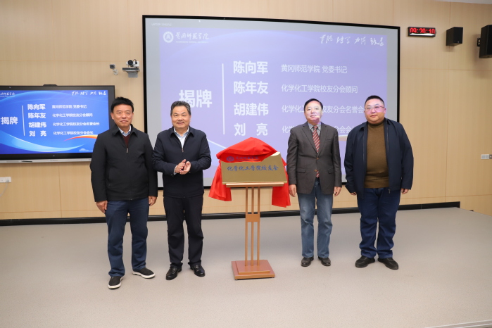 陈向军、陈年友、胡建伟、刘亮为英国365集团官网校友会化学化工分会揭牌。