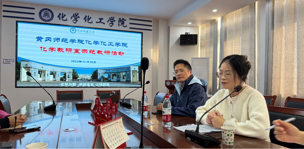 进一步提升教学质量,促进教师成长,强化优秀教师教学成果展示与交流研讨,2024年11月30日下午,化学教研室在化学楼407开展题为“教师教育教学能力提升”的优秀基层教学组织示范活动,2000级校友、武汉纺织大学彭俊军教授,2016级校友、大悟县宣化店镇金山初级中学董东花老师和学院杨一思副教授均作了主题发言,活动由化学化工学院副院长蒋小春主持。
