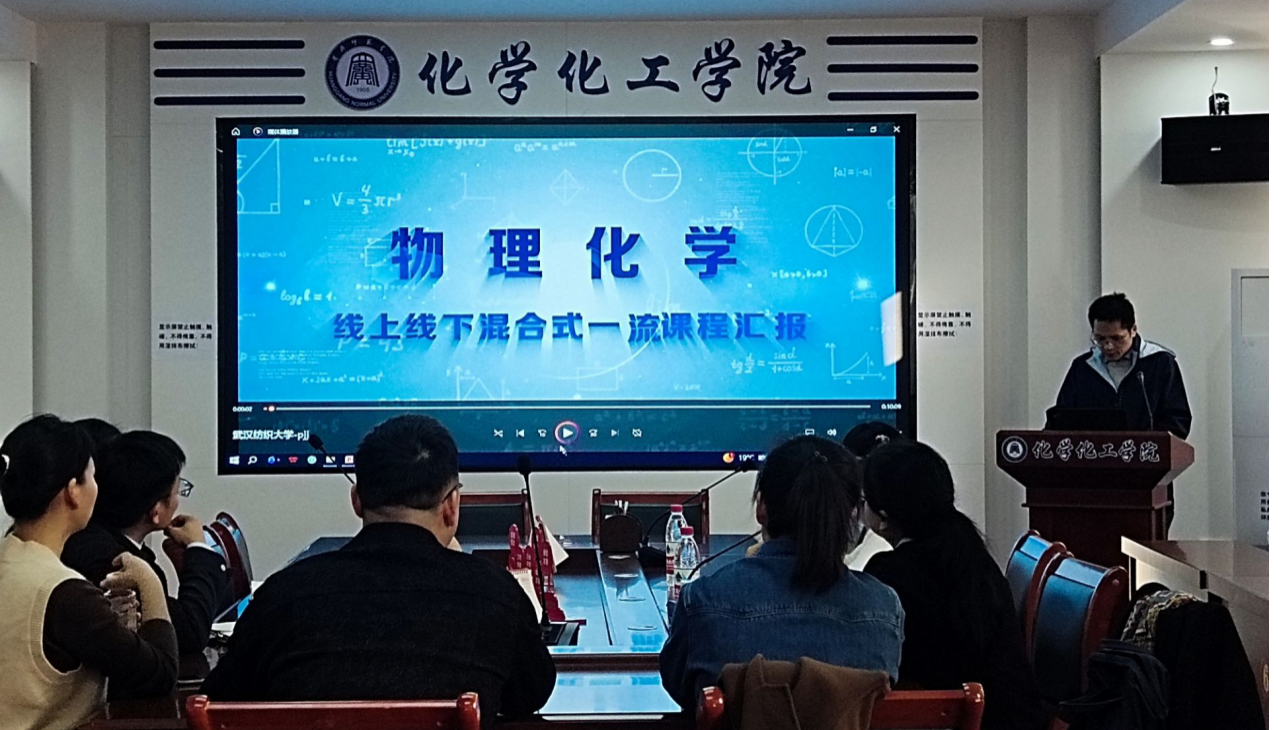 彭俊军教授从课程概述、课程设计、教学举措、创新成果与特色四个方面详细介绍了省级线上线下混合式一流课程——《物理化学》的建设情况,并分享了在教学科研工作上一路成长的心路历程,鼓励青年教师积极将科学研究成果融入教学,做到科教融汇,培养学生创新能力。