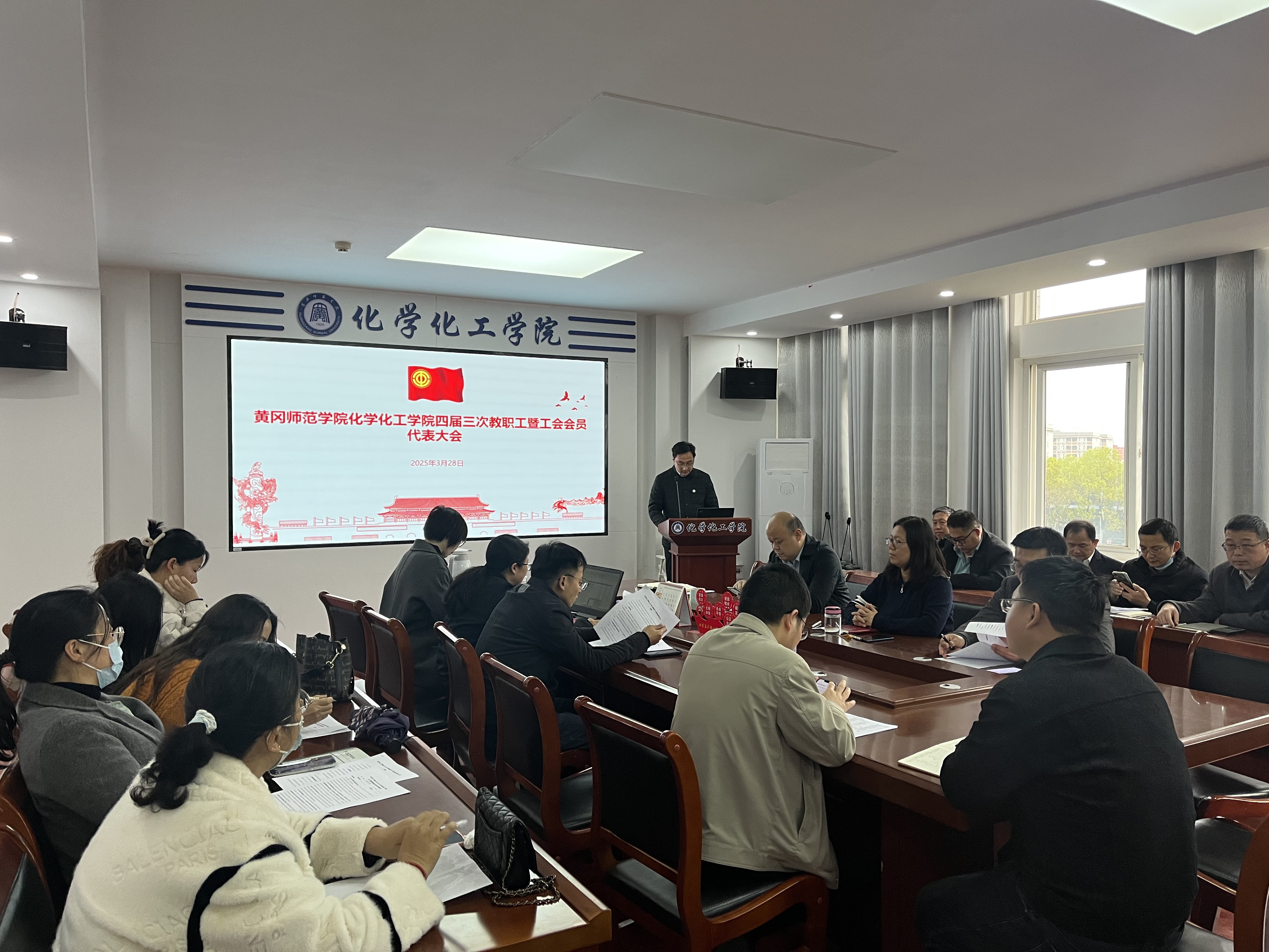 3月28日,化学化工学院召开四届三次教职工暨工会会员代表大会,深入学习贯彻校四届三次教代会精神,谋划学院高质量发展新篇章。学院领导班子及全体教职工参会,院党委副书记、工会主席龙刚主持会议。