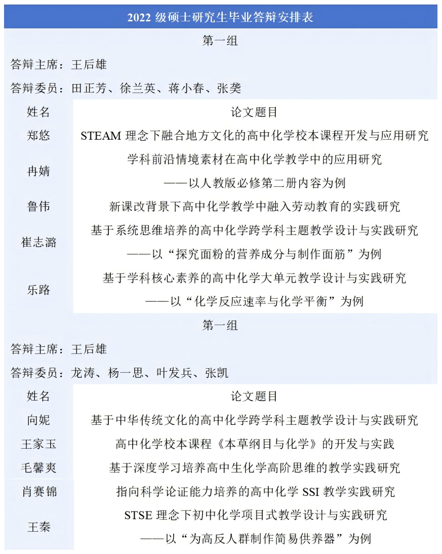 2022级学科教学(化学)专业硕士研究生学位论文答辩会顺利完成