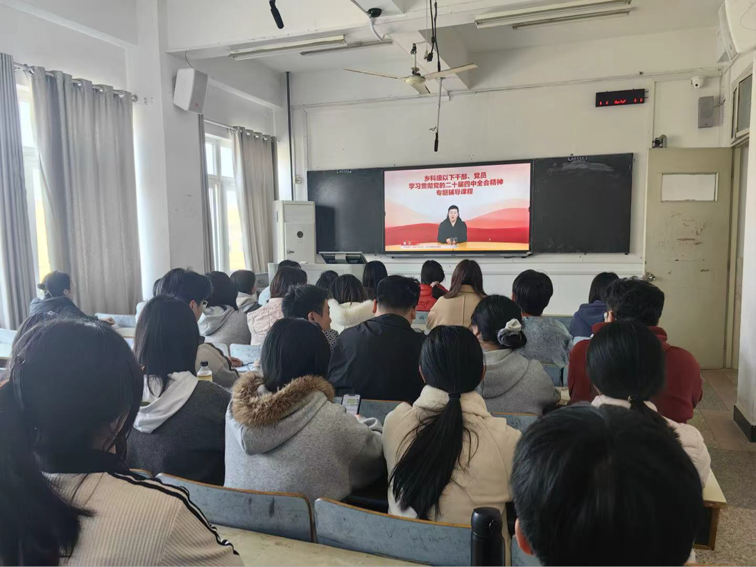 3月12日下午,化学化工学院在博学楼举行学习贯彻党的二十届四中全会精神培训会。本次培训以学校科级以下干部、党员为主,学院学生第一党支部书记陈维和学生党支部全体党员共同参加本次专题培训。